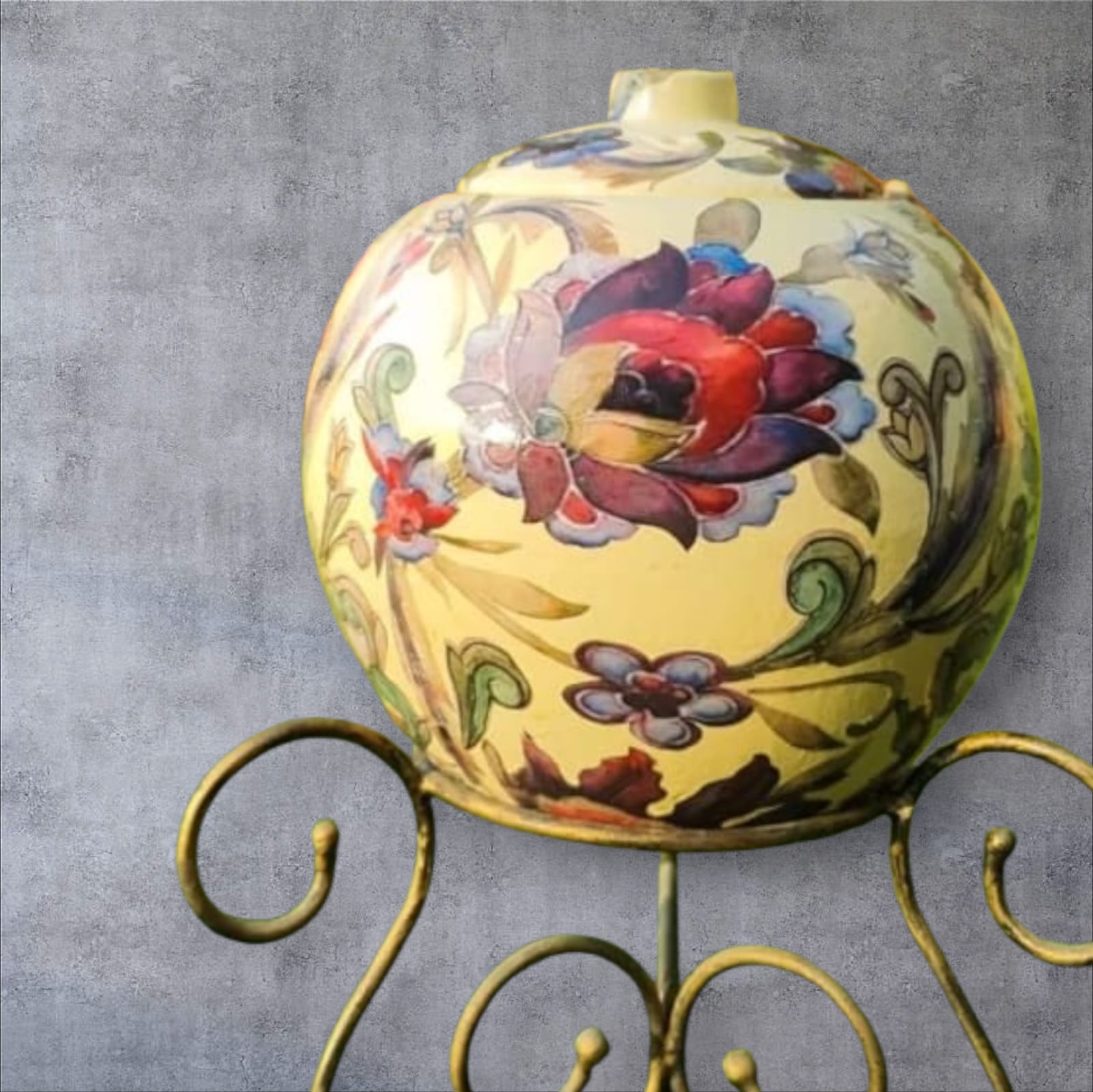 Introduce botanical elegance and handcrafted sophistication into your home with the Verdant Lotus Heirloom Jar, a luxury decorative pot designed to make a refined statement. Meticulously hand-painted and enhanced with intricate floral decoupage, this lidded artisan jar blends heritage artistry with contemporary interior styling.