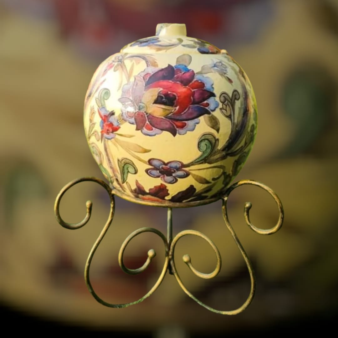 Each piece is meticulously handcrafted, with detailed painting and premium decoupage layering that creates depth, texture, and a refined finish. The protective sealing enhances durability while preserving the brilliance of its rich hues — from sapphire blues and burnt oranges to soft florals and delicate botanical accents.
