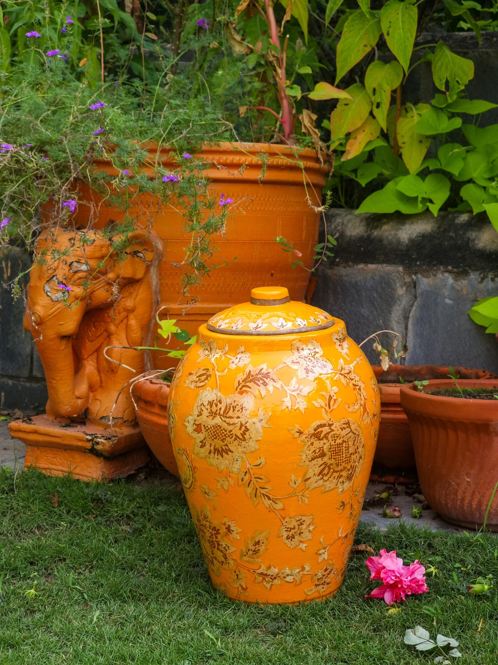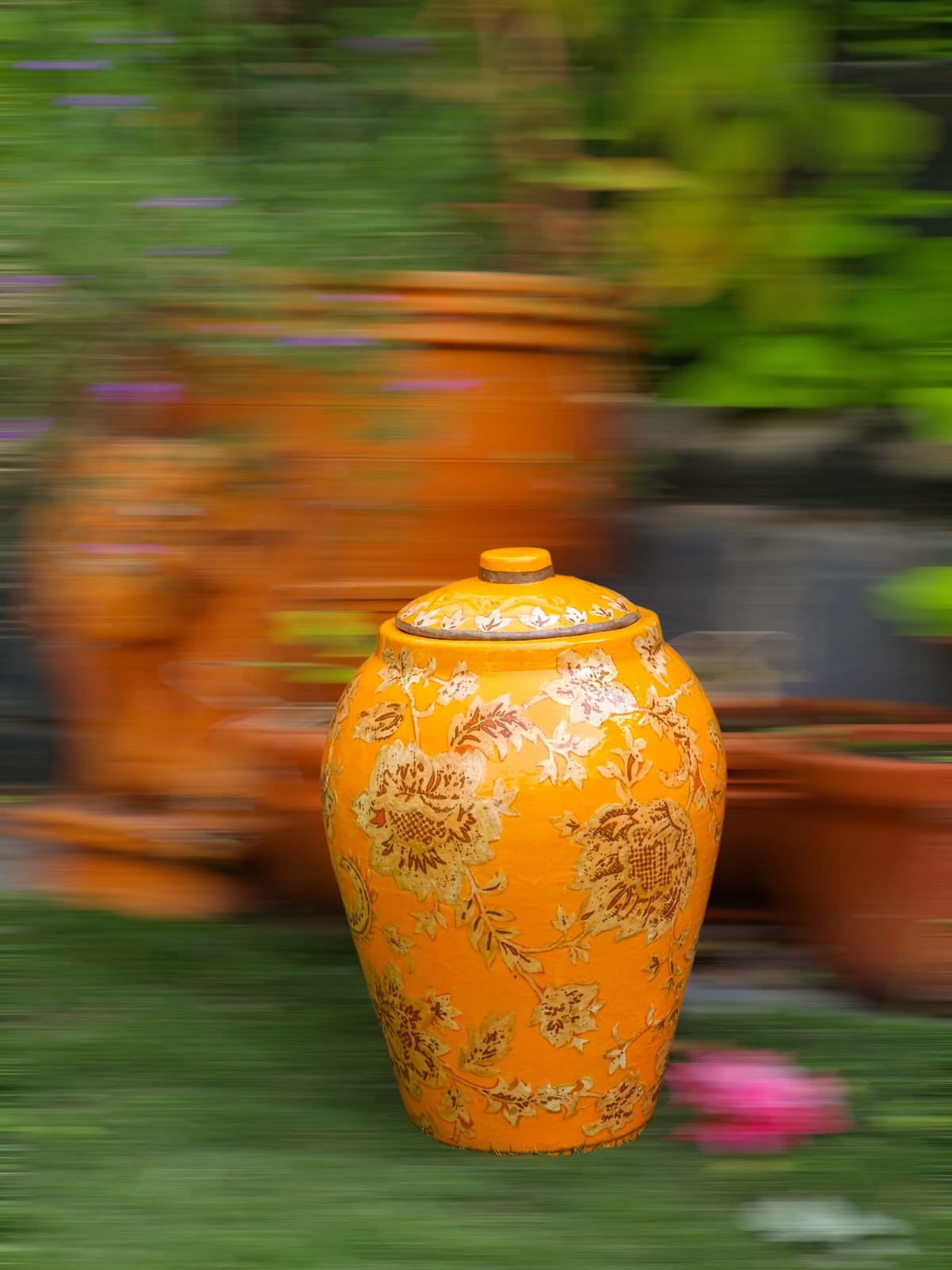 Designed for those who appreciate artisanal home accents, the Saffron Bloom Artisan Jar works beautifully as a luxury decorative jar, handcrafted floral centerpiece, or statement storage pot. Style it on a console table, entryway, living room corner, or covered patio space to instantly elevate the atmosphere with warmth and character.
